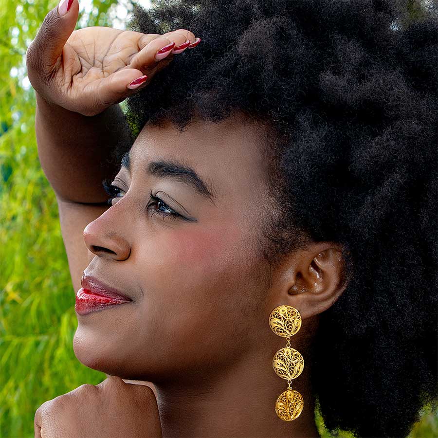 Estos aretes en filigrana Aguacero Pacífico son una joya artesanal hecha a mano en Colombia. Están inspirados en el aguacero que marca la vida cotidiana de una de las regiones más lluviosas y biodiversas del planeta: el litoral Pacífico colombiano.
